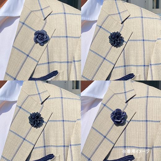 兵庫県西脇市を中心とした播州産地で生まれた綿織物【播州織生地】を使用したブートニエールです。自然な風合いと先染による豊富な色彩、肌触りの良さでラグジュアリーブランドの生地としても使用されている日本産の高品質織物です。