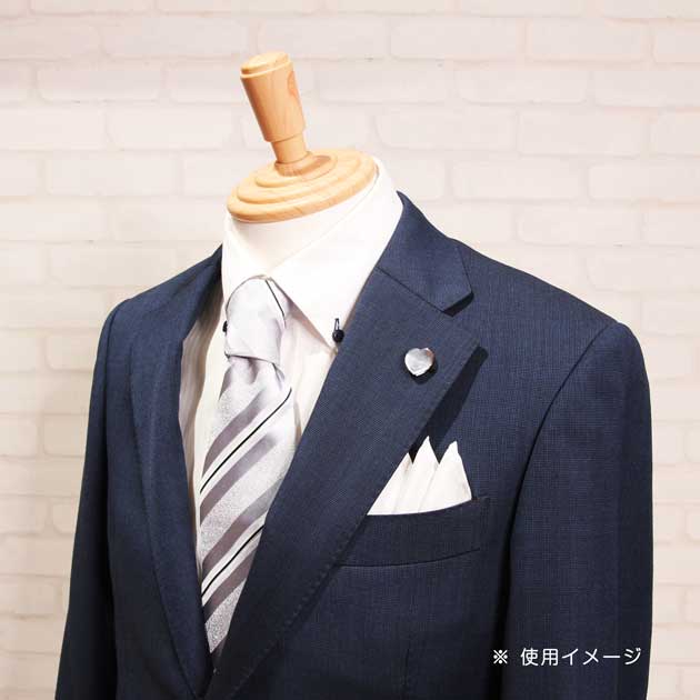 上品さを演出するシルクのポケットチーフです。結婚式、卒業式、フォーマルなシーンにブートニエールを合わせてコーディネートをするとお洒落度アップ。
